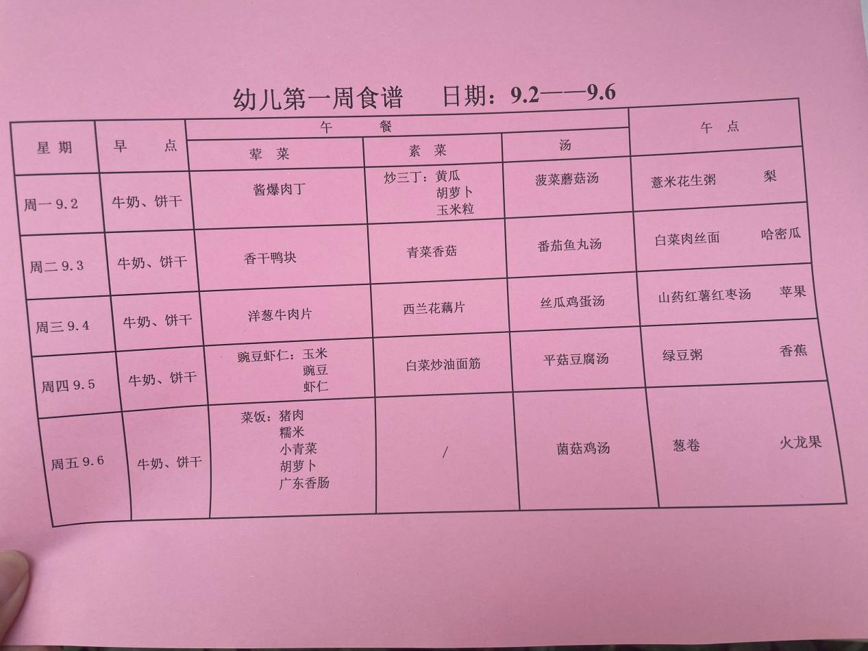2024~2025第一学期 幼儿食谱 第二周